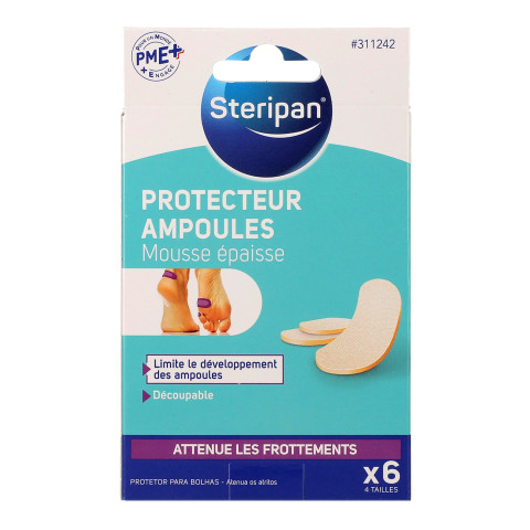 Les Protecteurs Anti-ampoules Steripan atténuent efficacement les frottements et absorbent durablement la pression. Ils limitent ainsi le développement des ampoules. Résistants, ils s'adaptent parfaitement aux mouvements du pied tout au long de la journée. De haute qualité, ils ne peluchent pas.