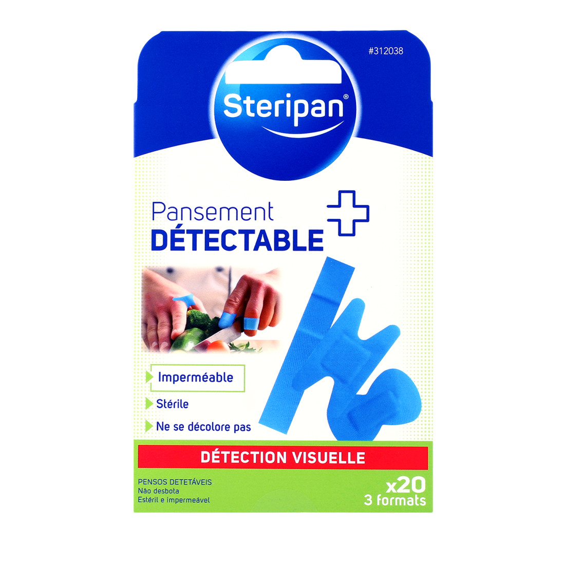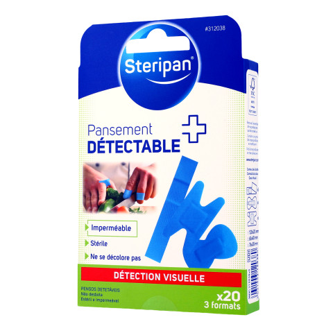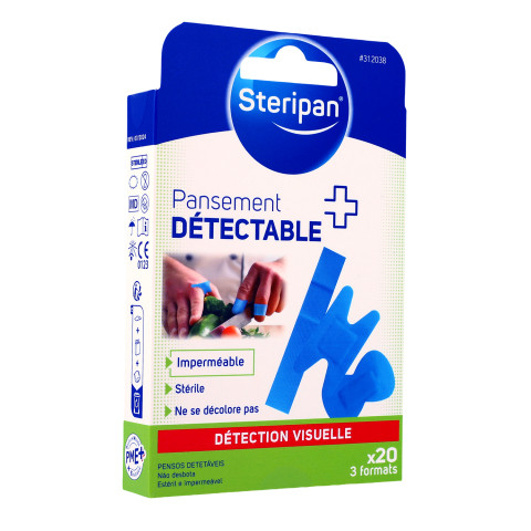 La couleur bleue de ce pansement permet d'être détectée en cas de coupure ou d'écorchure.